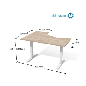 Biurko narożne (kątowe) na stelażu z elektryczną regulacją wysokości.