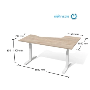 Biurko narożne (kątowe) na stelażu z elektryczną regulacją wysokości.