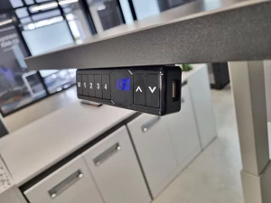 Panel sterujący biurka pozwala na regulację wysokości w zakresie 625-1275 mm. Bezpieczeństwo podczas regulacji wysokości zapewnia specjalny system antykolizyjny, który zatrzyma ruch blatu gdy napotka przeszkodę.