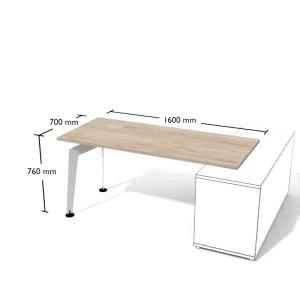 Biurko wymaga zastosowania dodatkowej szafki do podparcia z jednej strony. Szafka będzie stanowiła tzw. pomocnik, czyli wygodny i poręczny dodatek do stanowiska pracy.