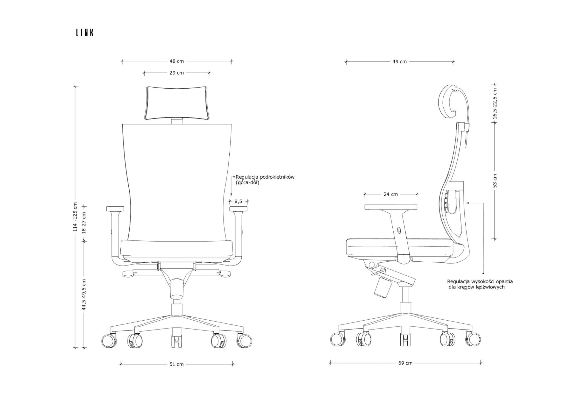 - Regulacja podłokietników (góra-dół)