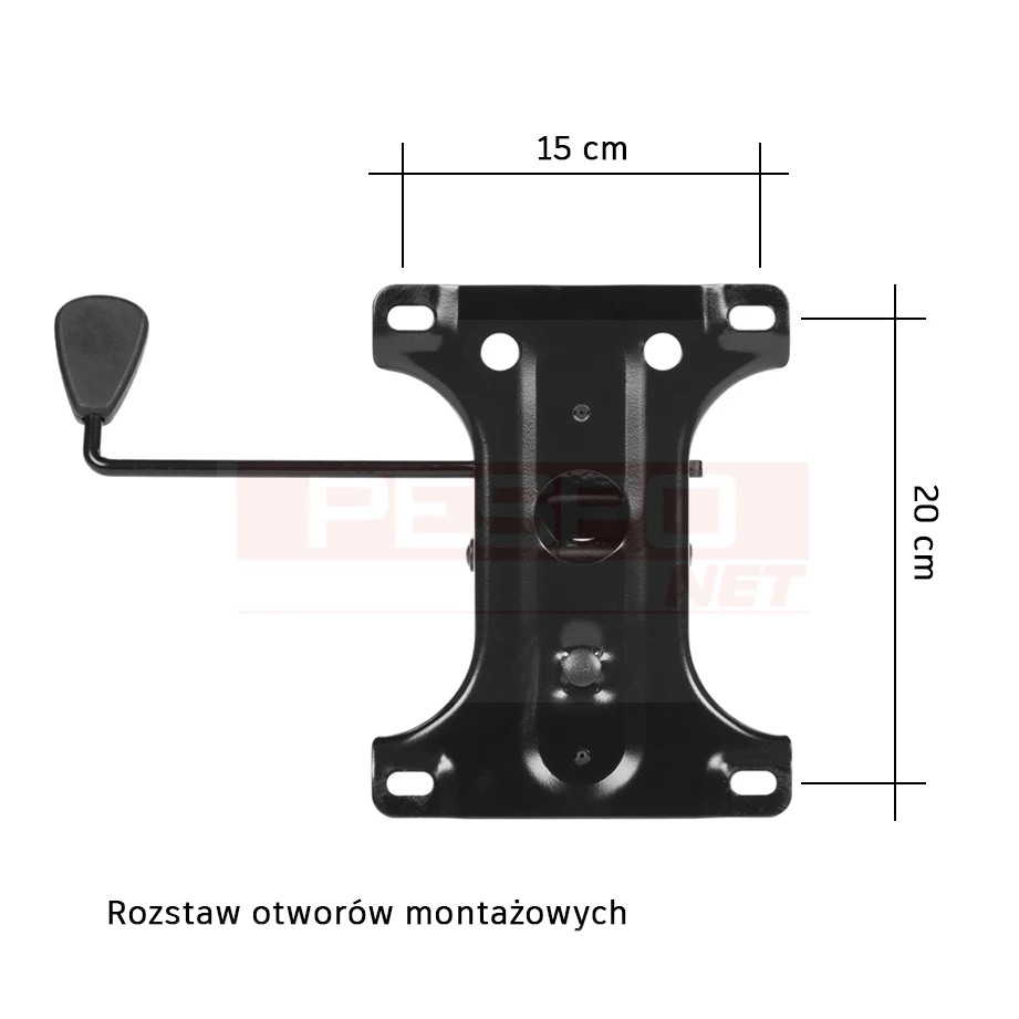 Pochylenie siedziska +3°/+18°. Rozstaw otworów montażowych 15x20 cm. Materiał: stal.