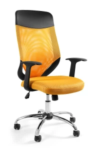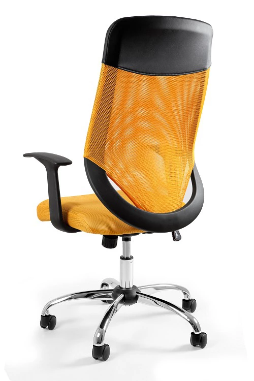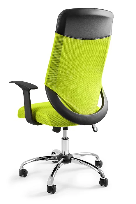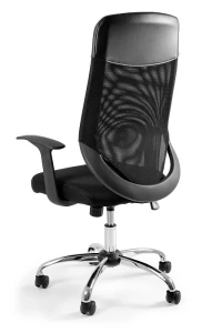 Fotel z siatkowym oparciem.