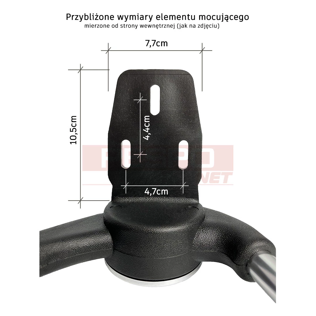 Model pasujący do popularnych foteli (noszących różne nazwy handlowe). Ważne jednak aby zmierzyć rozstaw otworów montażowych w swoim fotelu i porównać z zamieszczonym w naszej ofercie opisem.