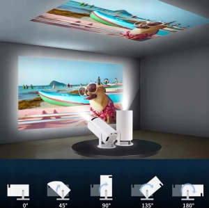 Projektor Magcubic HY300 PRO to kompaktowe urządzenie projekcyjne oparte na systemie Android 11.0. Urządzenie charakteryzuje się zintegrowaną konstrukcją z obrotową podstawą, co pozwala na projekcję pod dowolnym kątem (do 180 stopni), w tym na sufit.