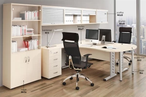 Modułowe szafy i regały umożliwiają wiele wariantów indywidualnej aranżacji pomieszczeń w biurach, gabinecie, pracowni czy mieszkaniu.