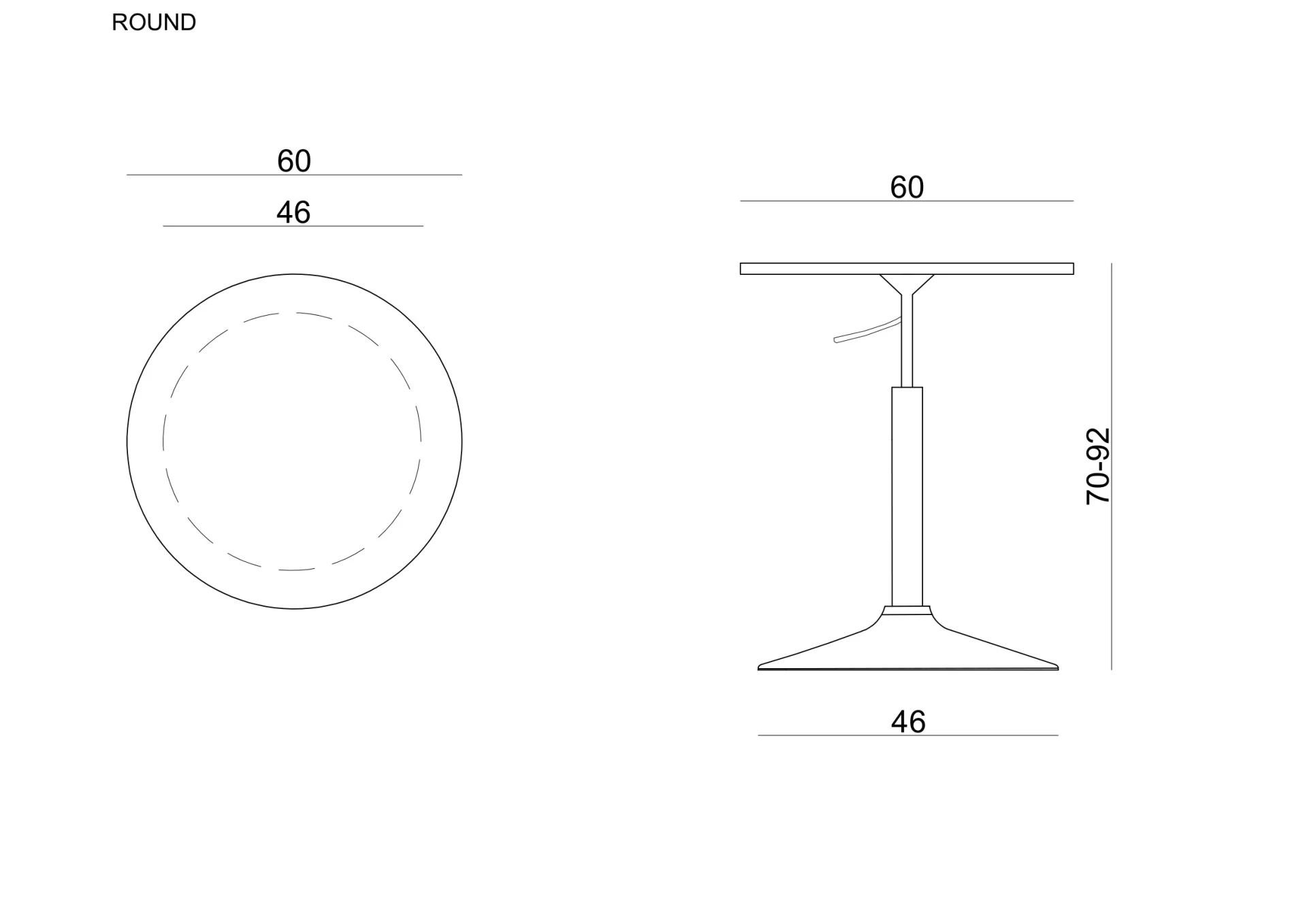 Stolik okrągły z regulacją wysokości