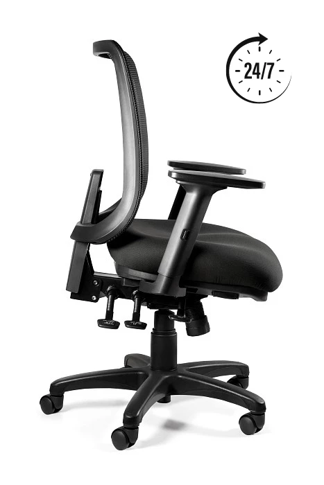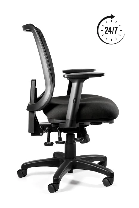 Dodatkowa funkcja kąta ujemnego oraz wbudowane podparcie dla kręgów lędźwiowych gwarantują optymalne wsparcie i komfort nawet podczas wielogodzinnej pracy.