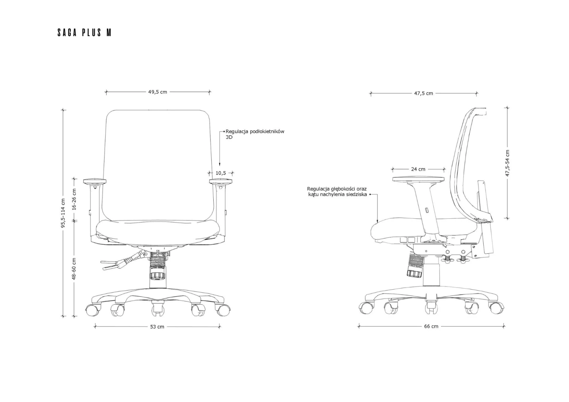 - Regulacja wysokości siedziska
