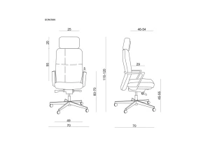 * Skóra naturalna w miejscu styczności użytkownika z fotelem, tył oparcia, spód i boki siedziska tapicerowane eko-skórą PU