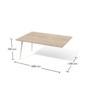 Stelaż stołu tworzy stalowy profil lakierowany proszkowo z toczonymi, stożkowymi nogami z naturalnego drewna bukowego pokrytego metodą olejowania (olej przezroczysty matowy).