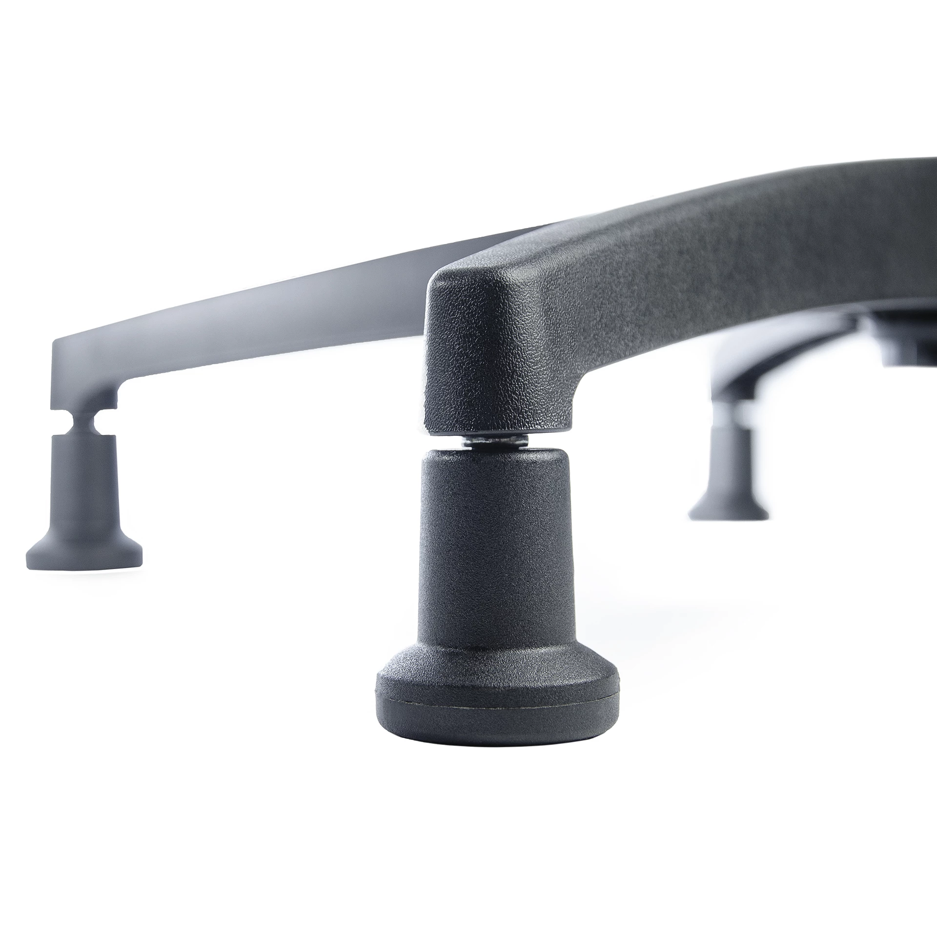 Wymiana kółek na stopki jest bardzo prosta. Wystarczy lekko podważyć i wyciągnąć kółka z gniazd znajdujących się w podstawie a następnie mocno wcisnąć w te miejsca stopki. Pamiętaj że w każdej chwili można ponownie zamienić stopki na kółka w zależności od potrzeb.